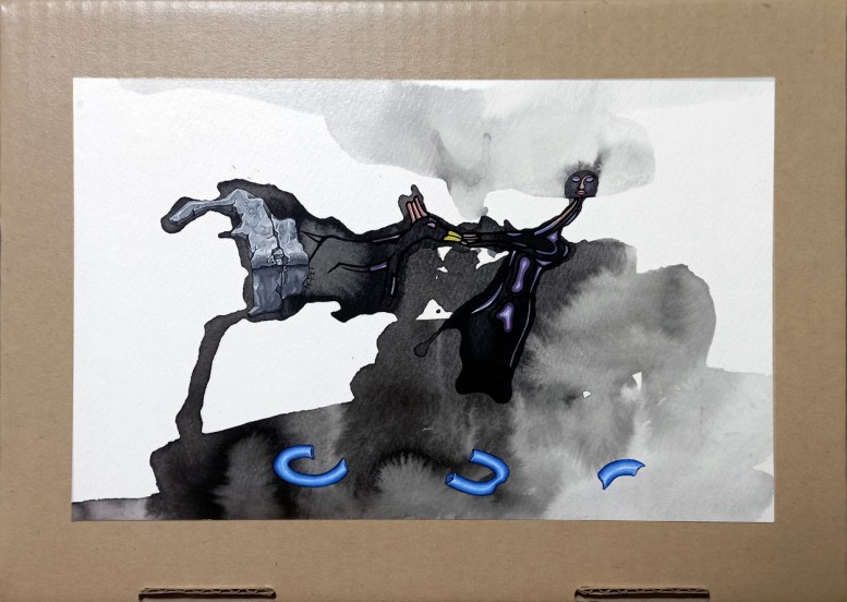 Are human beings currently living well?, 31x21.5cm, Mixed media on Parcel box, 2012