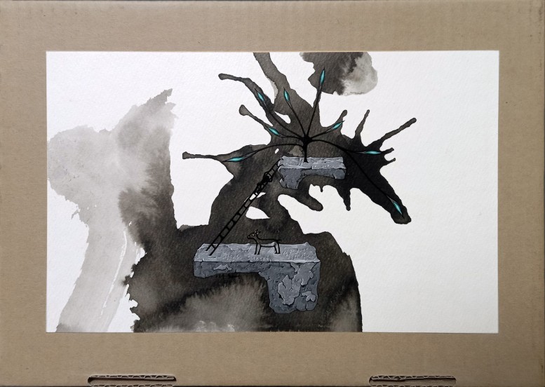 Are human beings currently living well?, 31x21.5cm, Mixed media on Parcel box, 2012