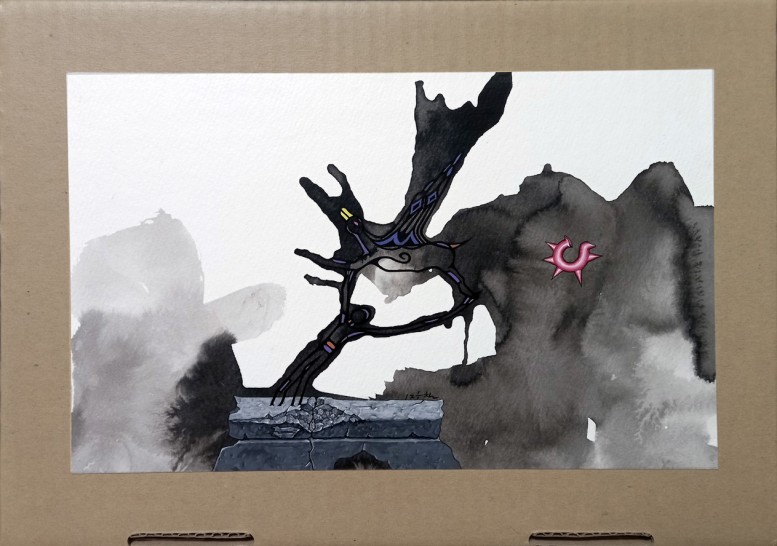 Are human beings currently living well?, 31x21.5cm, Mixed media on Parcel box, 2012