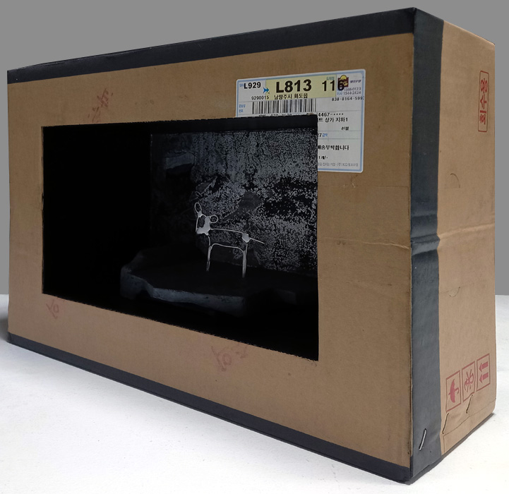 Are human beings currently living well?, 43x29x14cm, Mixed media on Parcel box, 2012