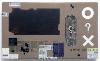 Title : O X ?. 55x12x52. 2021. Mixed media on Parcel box..