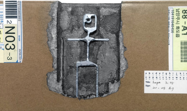 Title : Hope. 63x37x6. 2021. Mixed media on Parcel box