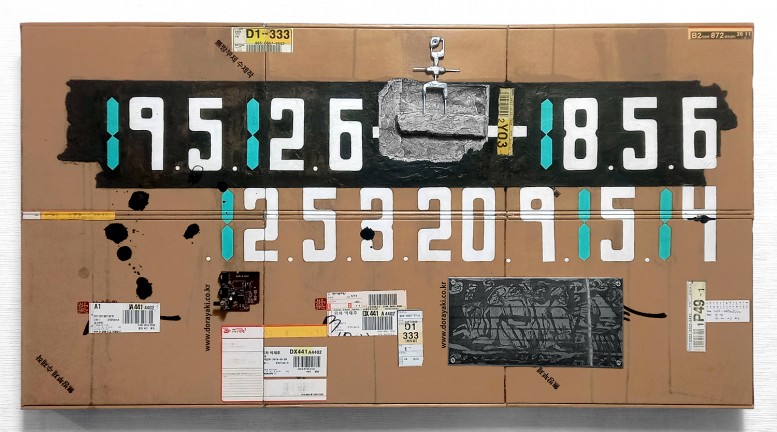 Title : Self-reflection. 103x55x5. 2019. Mixed media on Parcel box